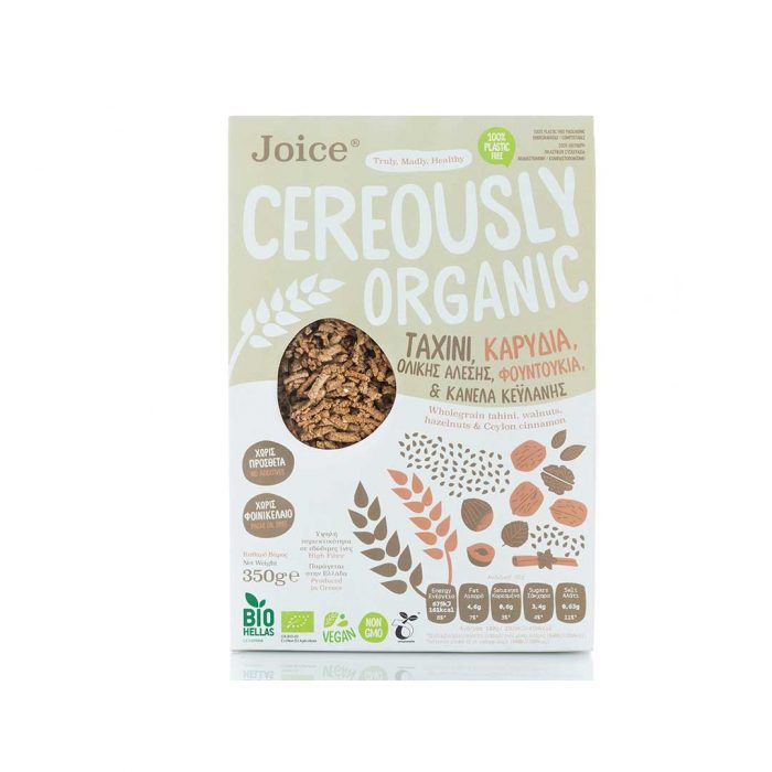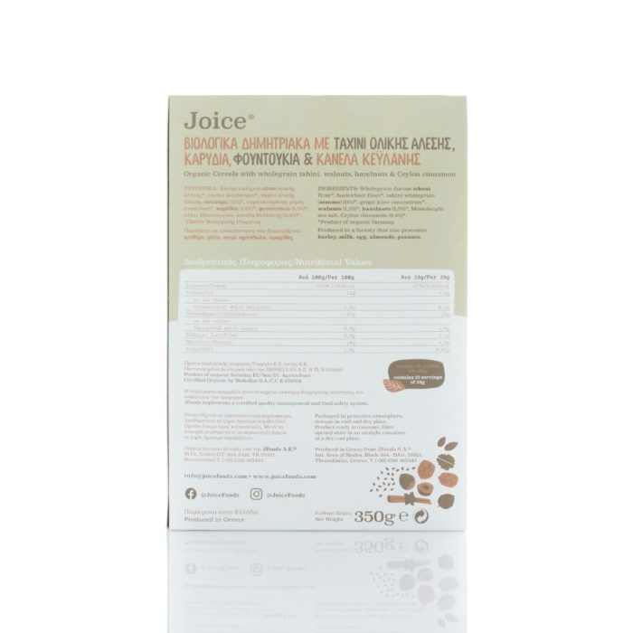 The completely innovative production process offers all the rich ingredients included in the organic Joice cereals in one bio spoon. Tahini organic cereals offer all the beneficial properties of the ingredients and a rich tasting experience for young and old combining a healthy diet with pleasure.
